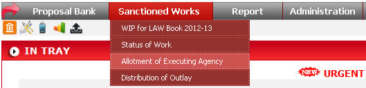 To open this form, click on Sanctioned Work -> Allotment of Executing Agency option from menu.