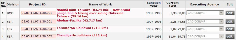 To allot the Executing Agency click on Edit button () at the right side of proposal, drop down list will enable for change. Select the desired agency name and click on Save button ().