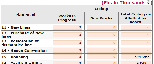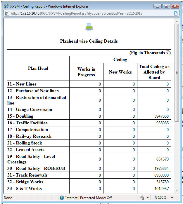 Select the Railway and Budget Year from drop down list and click on button to list the report in browser.