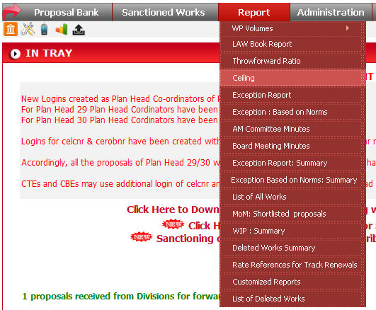 This option displays the ceiling provided under each Plan Head separately by New Works & Works in Progress.