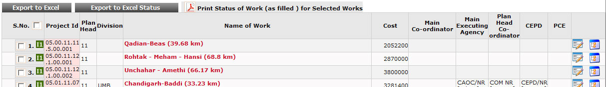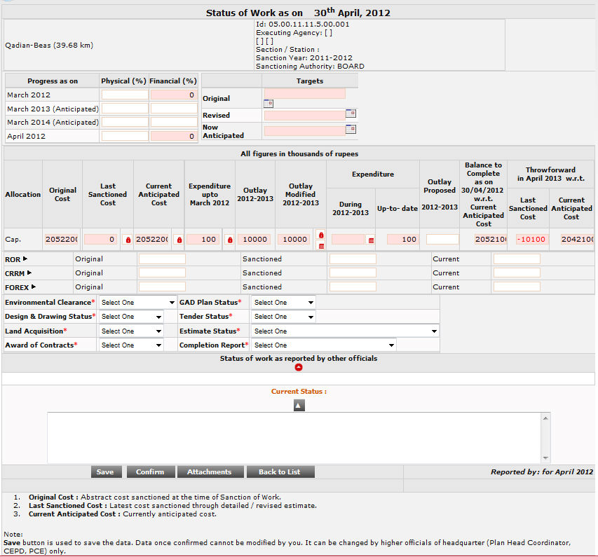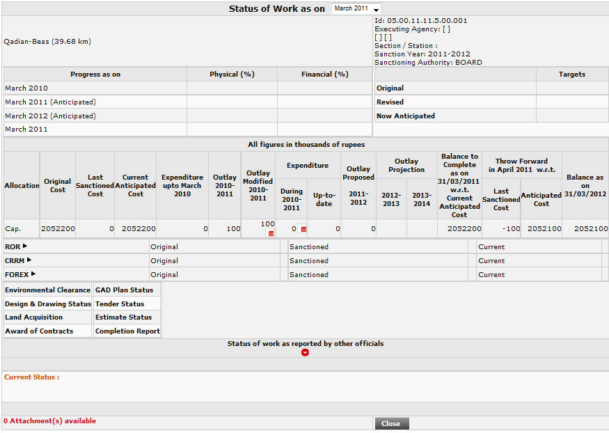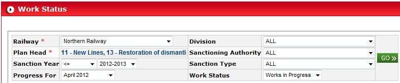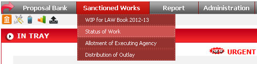 To open this form click on Sanctioned Work -> Status of Work option in menu.