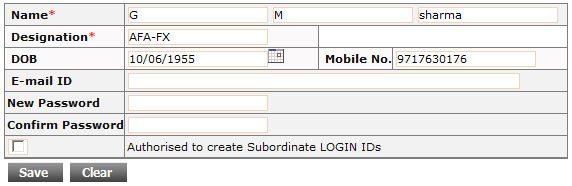 3. Personal profile (such as Name, Designation,DOB,E-Mail,Mobile No.),status of authority for Proposal Creation/Login Creation will be displayed.