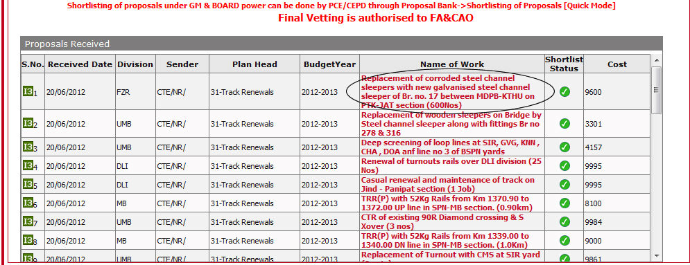 To open this form login in IRPSM using your Login Id and click on Name of Work available in the list of Proposals Received.