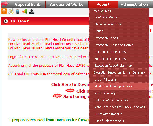 To run this report click on Report -> MoM: Shortlisted Proposals.