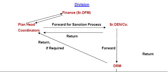 Plan Head Co-ordinator will send the proposal to DRM through Sr. DEN(Co.). The proposals, where the cost of the proposal is not matching with the vetted cost or proposal is not vetted, will not be allowed to be sent to DRM.