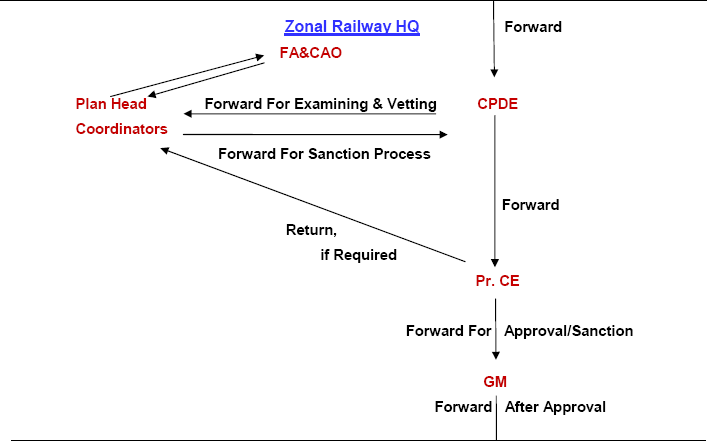 The proposals as received by DRM under his sanctioning power shall be sanctioned by him. The proposal beyond power of DRM/CWM will approved and forwarded to CE/P&D (CEPD) at Headquarters.