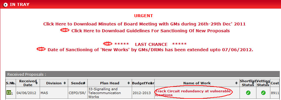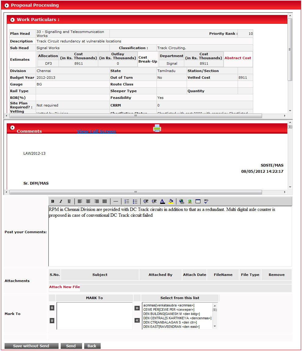 After clicking above highlighted Name of Work, Proposal Processing window will open on the screen.