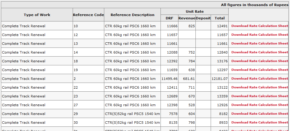 If you want to download Rate Calculation Sheet of a particular type of work, click on link provided right side of each type of work. Popup will appear contains excel file.