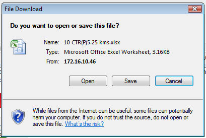 Click on this file and a prompt window will appear to Save or Open this excel file.